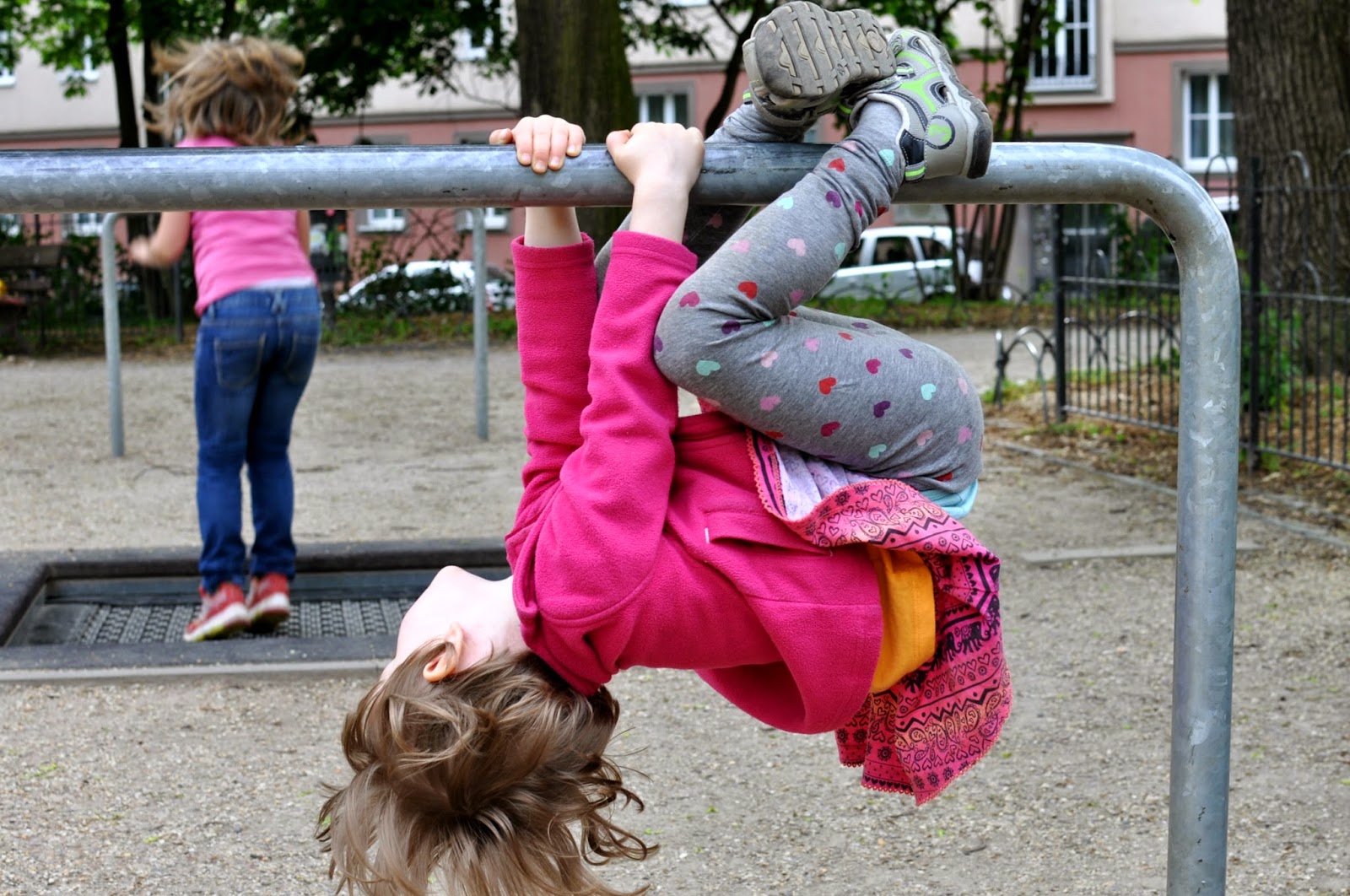 Dann guckten wir doch noch auf den Spielplatz. Wirbelwind entdeckte eine neue Rutschtechnik: Kopfüber. „Mama, guck mal ich kann!“ rief sie mir ständig zu und stürzte sich in die Tiefe.