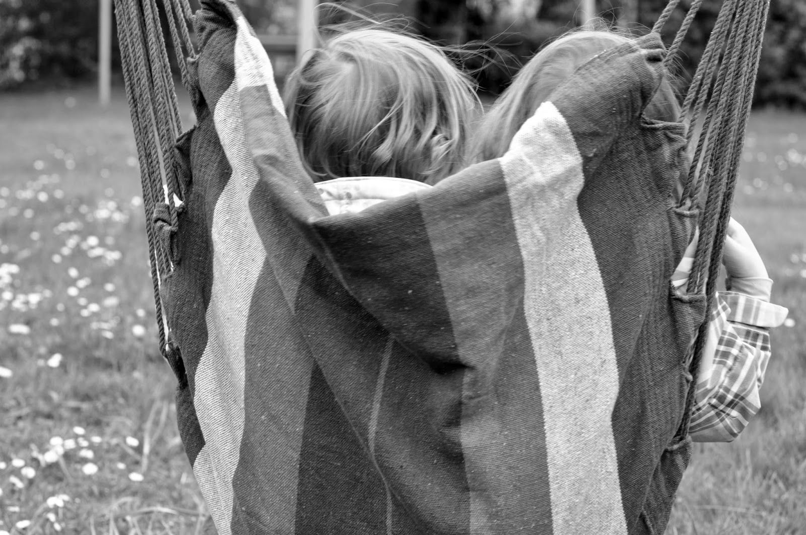 Am Nachmittag nahmen wir uns ganz fest vor zu Grillen. Zwar war Regen angesagt, aber dieser hielt sich dann zum GlĂŒck bis zum Abend zurĂŒck! Und so verbrachten wir im Hof einen schönen Nachmittag. Die beiden MĂ€dels machten es sich in dem neuen HĂ€ngesessel bequem.
