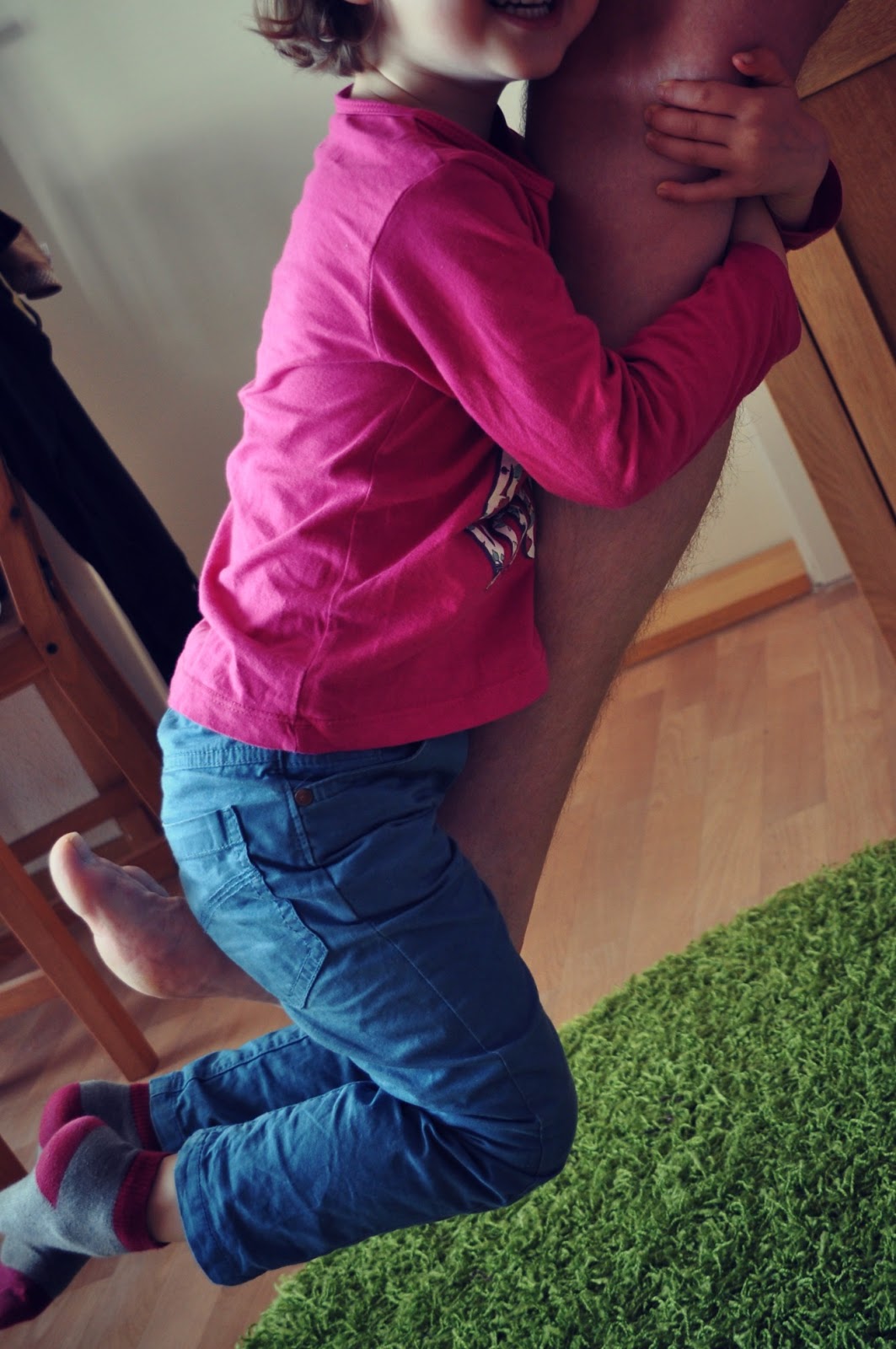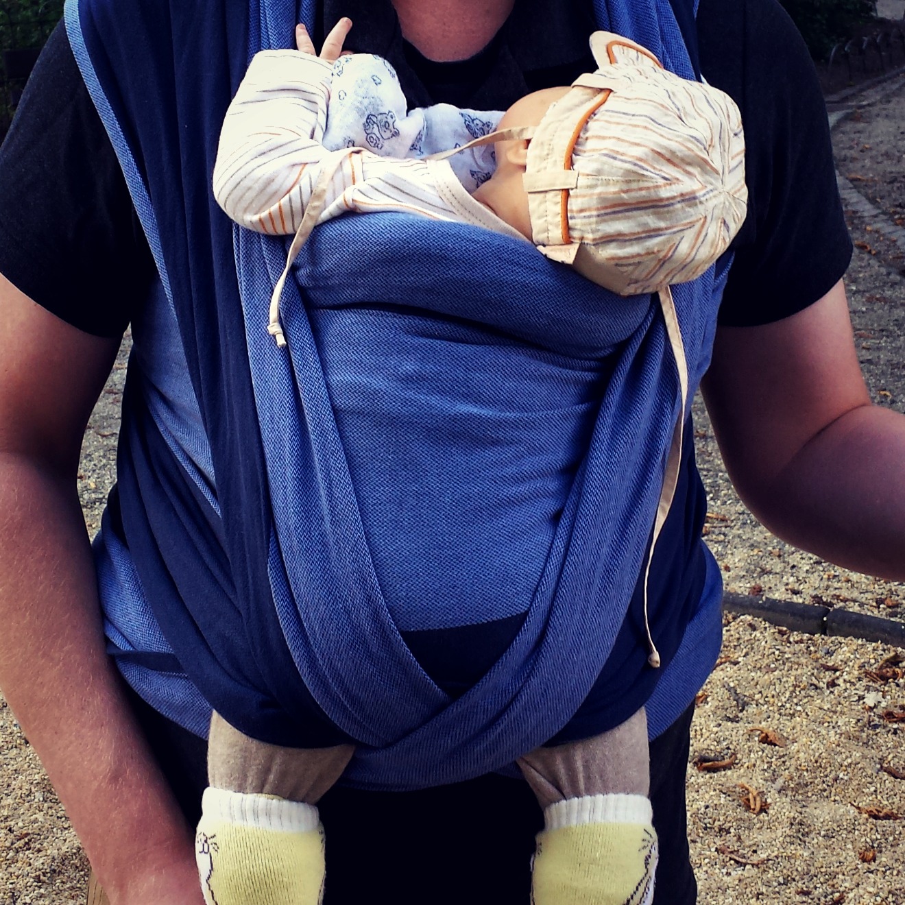 Anschließend ging es etwas raus. Der Papa schnallte sich Wölkchen mal wieder ins Tragetuch. Am Vormittag hatte das prima geklappt, da schlief sie 2 Stunden. Doch nun wurde sie nach einer halben Stunde wieder wach. Aber das lag vielleicht auch an der eigenwilligen Bindetechnik 😛