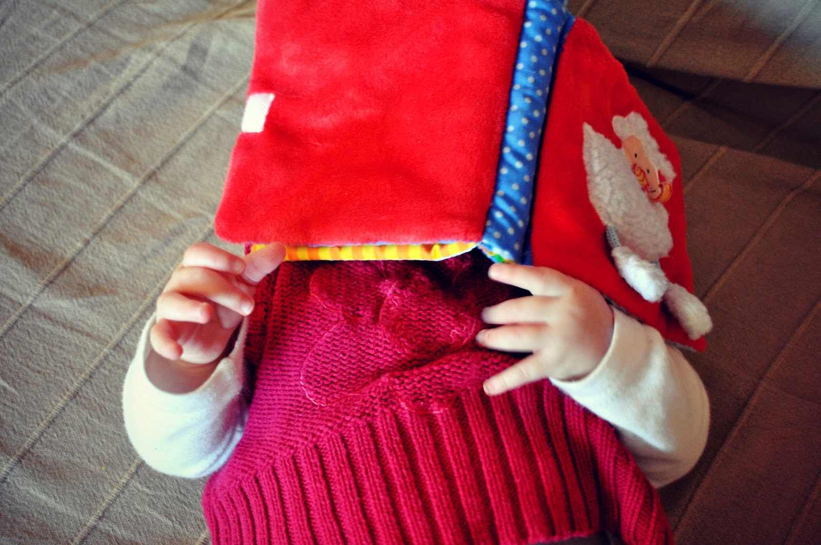 Witzigerweise kann Wölkchen noch keine Gegenstände anfassen, die AUF ihrem Gesicht liegen. Rutscht beispielsweise das Buch nach oben über ihr Gesicht, dann liegt sie perplex da und starrt in den störenden Stoff.