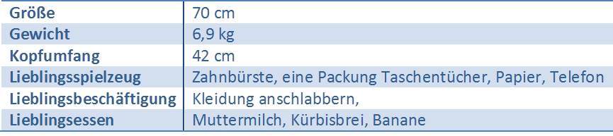 | Wölkchens Steckbrief am Ende des sechsten Monats |