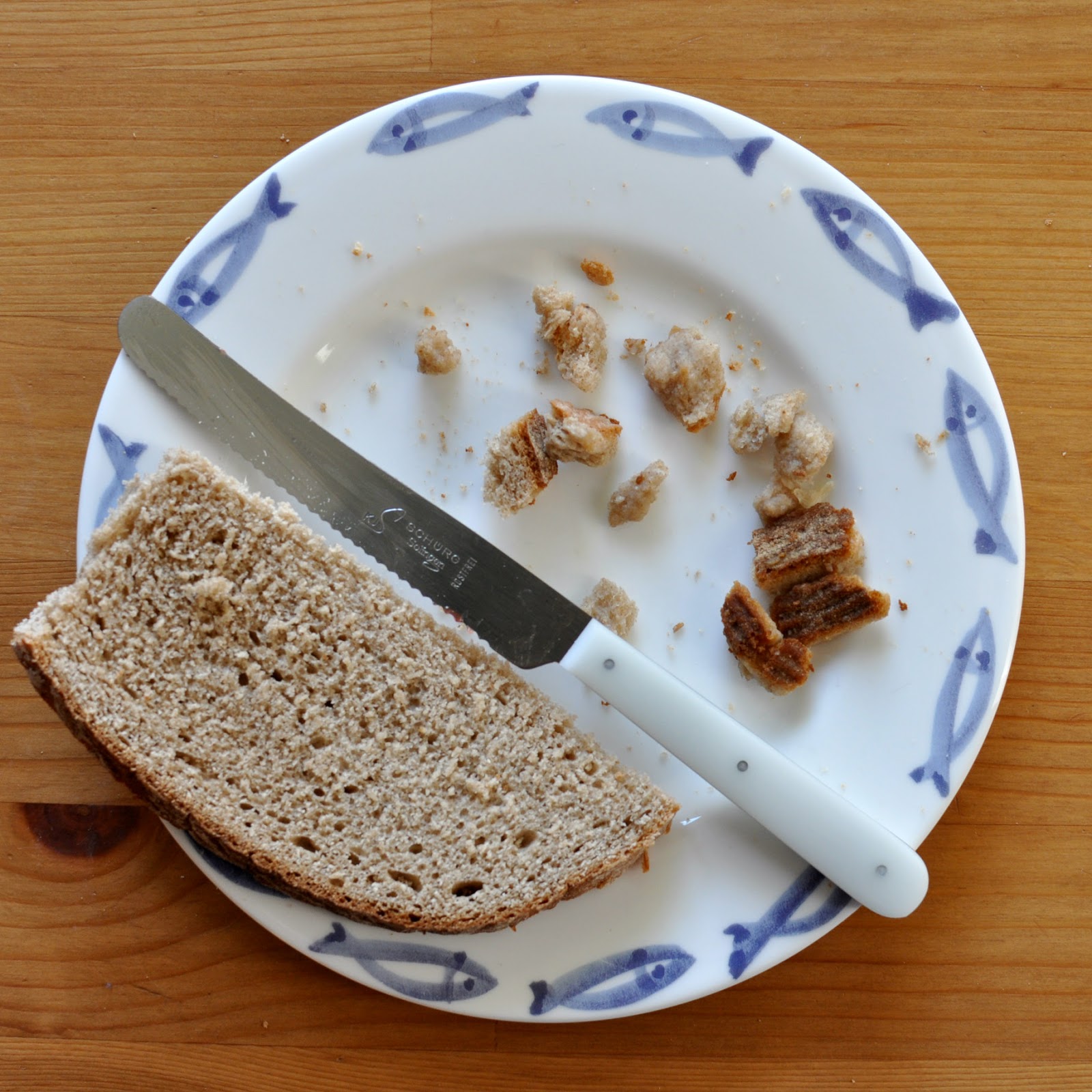 1. Der Tag startet mit einem Frühstück, logisch. Das, was Ihr auf meinem Teller seht, sind die Brotreste von Wölkchen. Irgendwie degradiert mein Teller immer zum Mülleimer. Das war bei Wirbelwind schon so und geht nun fließend zu Wölkchen über.