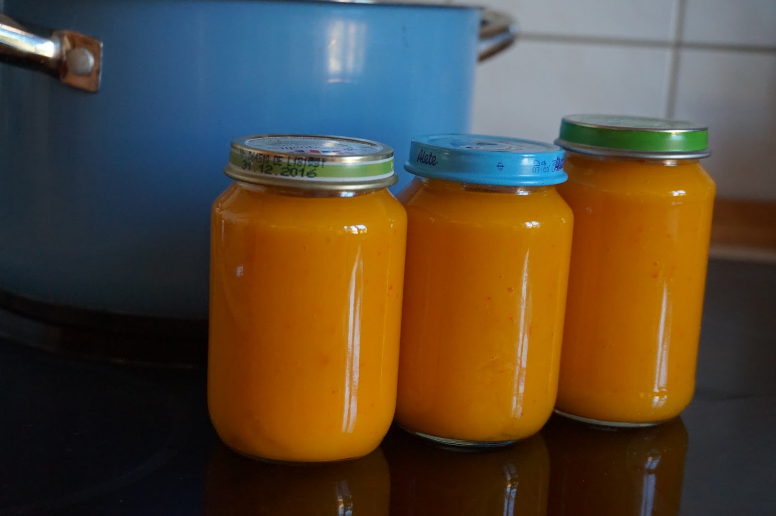 Schließlich den Brei in (zuvor ausgekochte) Gläschen abfüllen, verschrauben und kühl stellen. Fertig.