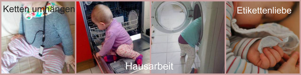 - Sobald sie die Küche betritt, steuert sie schnurstracks den Geschirrspüler an. Auch die Waschmaschine findet sie spannend, steckt Dinge hinein oder räumt die Wäsche aus. Beste Voraussetzungen für eine spätere Hausfrauenkarriere.