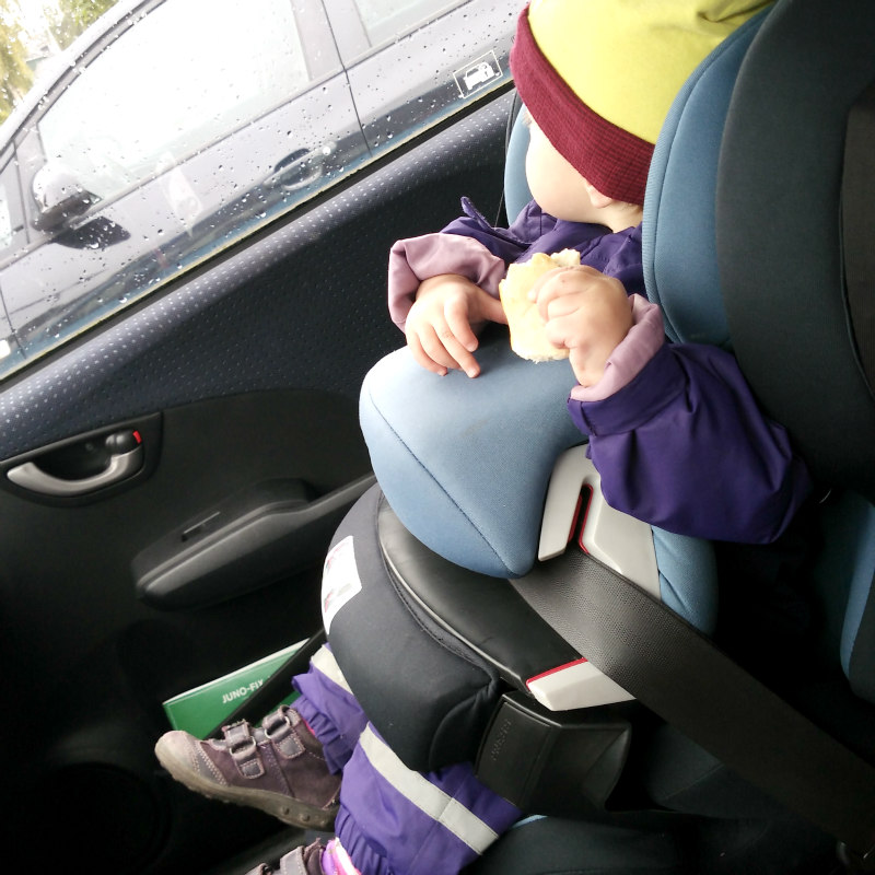 4. Anschließend sind wir noch einkaufen gefahren. Hier mampft Wölkchen bereits genüsslich das frisch erworbene Brötchen.